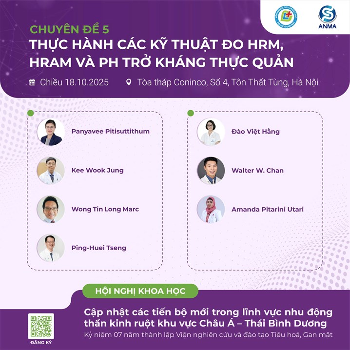 Phiên thực hành mở đầu với chuyên đề: “Thực hành các kỹ thuật đo HRM, HRAM và pH trở kháng thực quản” – nơi các chuyên gia sẽ trực tiếp hướng dẫn, trao đổi những kỹ thuật thăm dò chức năng đường tiêu hoá bao gồm: Đo áp lực nhu động thực quản độ phân giải cao (HRM), đo pH trở kháng thực quản 24 giờ, đo áp lực hậu môn - trực tràng độ phân giải cao (HRAM). Đây là cơ hội để người tham gia có thể tiếp cận kiến thức thực tiễn, quan sát quy trình chuẩn và nâng cao kỹ năng ứng dụng các kỹ thuật trong lâm sàng.
