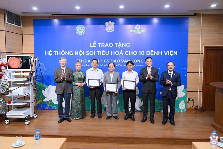 🔰 Chiều ngày 12/11, “Lễ trao tặng hệ thống nội soi tiêu hoá cho 10 bệnh viện từ gia đình GS Đào Văn Long” đã diễn ra tại Trường Đại học Y Hà Nội với sự tham dự của đại diện Bộ Y tế, lãnh đạo Trường Đại học Y Hà Nội, Sở Y tế Vĩnh Long, giám đốc các bệnh viện nhận tài trợ và các cơ quan truyền thông.