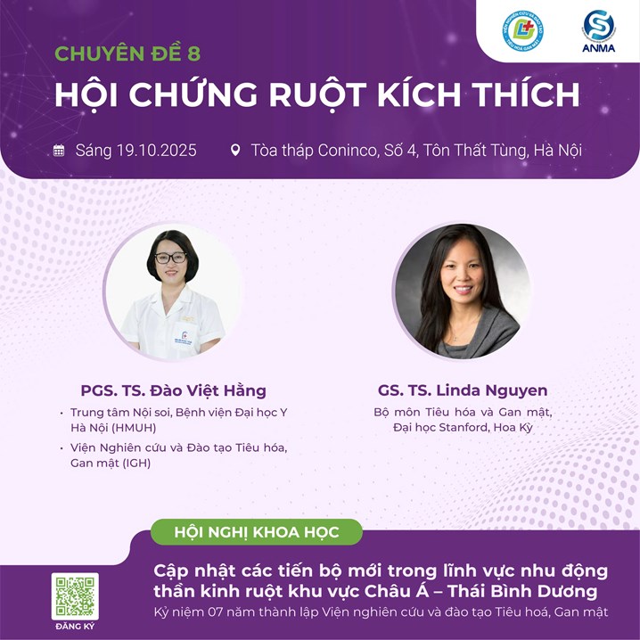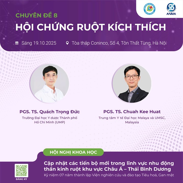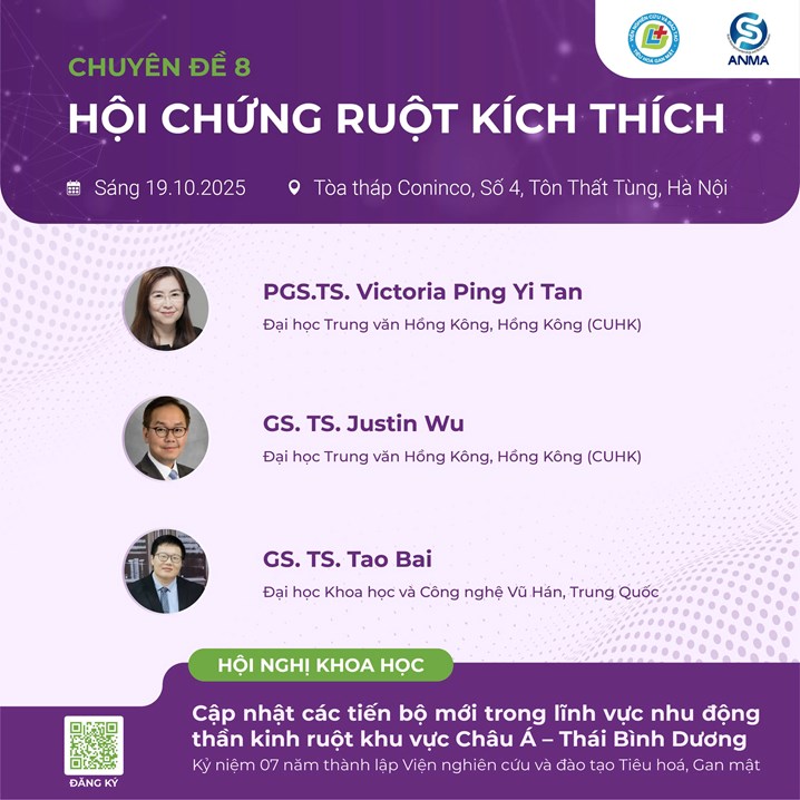 Trong chuyên đề thứ 8, các báo cáo viên sẽ tập trung trình bày và thảo luận nội dung liên quan đến “Hội chứng ruột kích thích (IBS)” – một trong những rối loạn tiêu hoá chức năng phổ biến trên toàn thế giới và tại Việt Nam, ảnh hưởng nghiêm trọng đến chất lượng sống người bệnh. Chuyên đề này sẽ cung cấp cho người tham gia góc nhìn toàn diện về bệnh IBS từ định nghĩa, sinh lý bệnh, biểu hiện lâm sàng, tiếp cận chẩn đoán, chiến lược điều trị cá thể hóa, vai trò của dinh dưỡng, yếu tố tâm lý, tới những hướng nghiên cứu tiềm năng về điều chỉnh hệ vi sinh đường ruột.